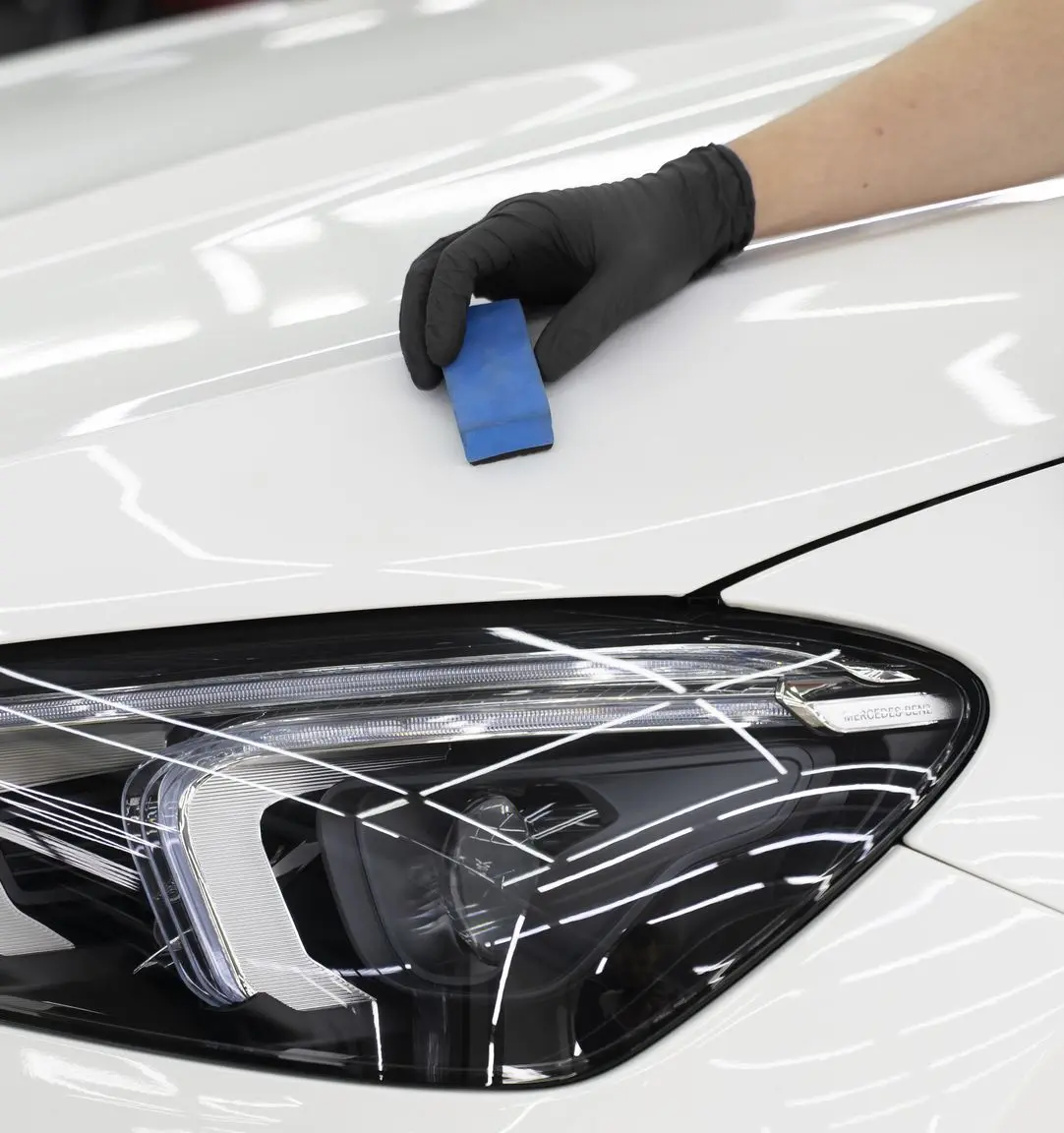 Clear film protecting high-risk areas from road debris, scratches, and fading.